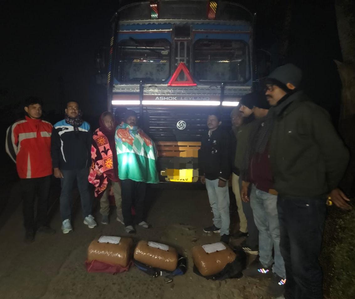 শোভনলাল রাহা, নৈহাটি : যৌথ অভিযানে ২৭ কেজি গাঁজা-সহ তিনজনকে গ্রেফতার করল ব্যারাকপুর পুলিশ কমিশনারেটের গোয়েন্দা বিভাগ ও শিবদাসপুর থানার পুলিশ।বৃহস্পতিবার রাতে নির্ভরযোগ্য সূত্রে পাওয়া খবরের ভিত্তিতে ব্যারাকপুর গোয়েন্দা বিভাগের সক্রিয় সহযোগিতায় শিবদাসপুর থানার পুলিশ নতুন হাট বাজার এলাকায় অভিযান চালায়। ব্যারাকপুর নর্থ জোনের ডিসিপি গণেশ বিশ্বাস জানান, একটি কন্টেনারে ২৭ কেজি গাঁজা পাচার করা হচ্ছিল। সেসময়ই হাতেনাতে তিনজনকে গ্রেফতার করা হয়। বাজেয়াপ্ত করা হয়েছে উদ্ধার হওয়া ২৭ কেজি গাঁজা। ধৃতদের নাম বিশ্বজিৎ রায় (৩৪), সুজিত বড়ুয়া (৩৬) এবং অজয় বিশ্বাস (৪৪)। প্রথমজন উত্তর ২৪ পরগনার নিউ ব্যারাকপুর থানা এলাকার বাসিন্দা। বাকি দু’জনের বাড়ি জলপাইগুড়ি এলাকায়। কোথা থেকে গাঁজা কন্টেনারে তোলা হয়েছিল, কি উদ্দেশ্যে, কোথায় নিয়ে যাওয়া হচ্ছিল সেসব জানতে তদন্ত শুরু করেছে পুলিশ।